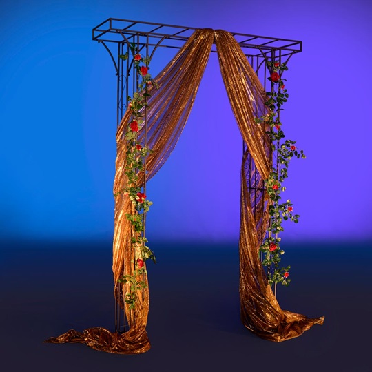 - Display wire or metal arches or castle gates adorned in rose garlands