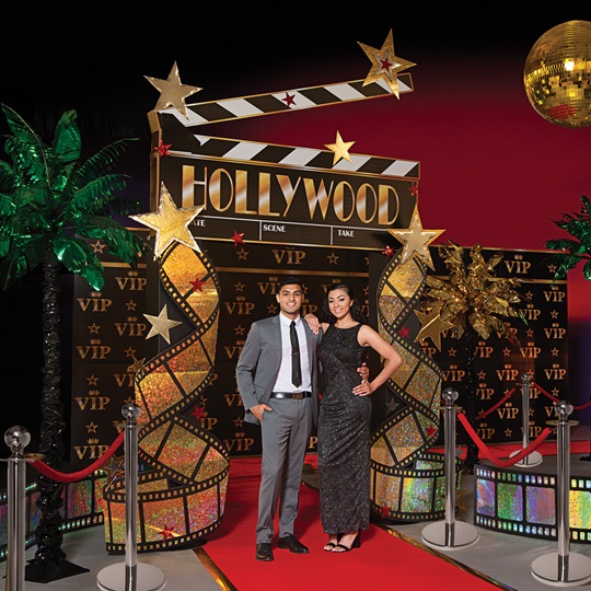 Design your venue like a movie premiere. Create multiple photo op stations; think step-and-repeat banners, director’s chairs with students’ names, and a paparazzi-style photo area complete with flashing lights.