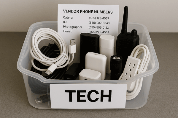 - Printed contact list: Keep hard copies of numbers for vendors, administration, and security in case cell service is spotty.