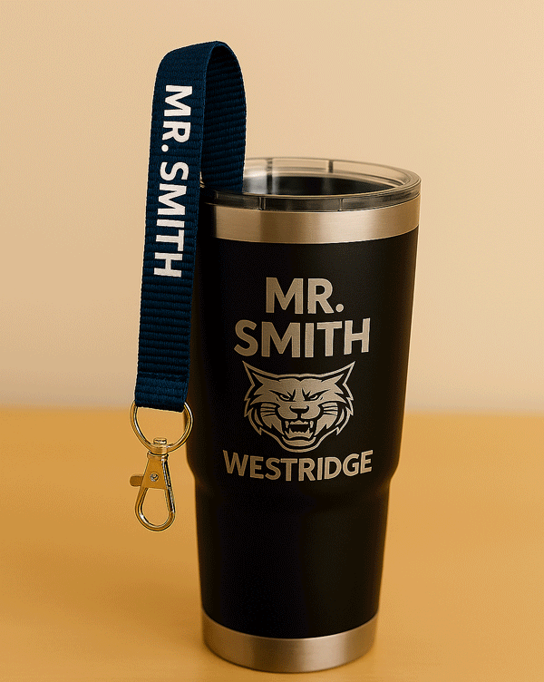 Personalized tumblers, mugs, and stadium cups can be further customized by pairing them with matching accessories. A cup filled with a personalized lanyard or a wristband creates a cohesive, branded look that teachers can wear and use with pride.