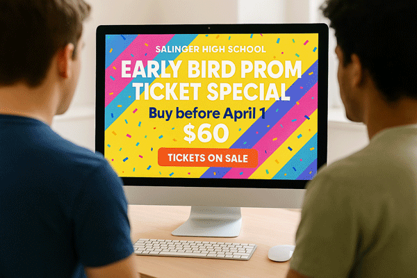 Introducing lower pricing on Prom tickets for a limited time is a fantastic way to encourage early action. An early bird special boosts sales right out of the gate, helping advisors estimate attendance well in advance. This strategy also reduces last-minute stress for everyone involved.
