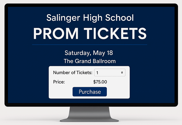 Remove friction by giving teens a fast, accessible way to purchase their Prom tickets. Selling online makes buying easier for students, tracking simpler for schools, and sharing links much more effective across various channels. Online transactions drastically reduce the confusion normally associated with collecting cash in the cafeteria and distributing physical tickets during lunch hours.