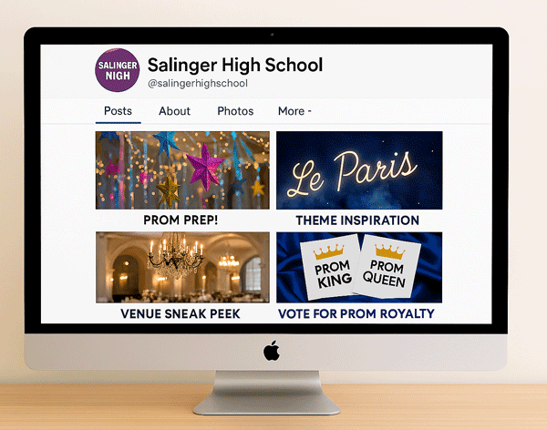 Give students exciting sneak peeks to make the event feel real before the big day arrives. Show off decor previews, reveal theme inspiration, and share teaser shots of the venue. You can even run royalty voting promotions to boost engagement.