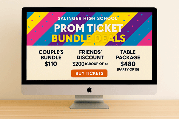 Keep Prom ticket pricing structure simple and easy to understand. Promote these specific offers clearly on your sales page and throughout your social media posts to maximize their impact.