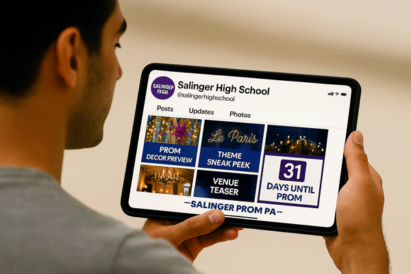 Treat your Prom theme as an active marketing tool instead of a simple event detail. Build curiosity using theme reveal videos, livestream announcements, and teaser graphics. Every time you mention the theme, push students directly to the ticket page.